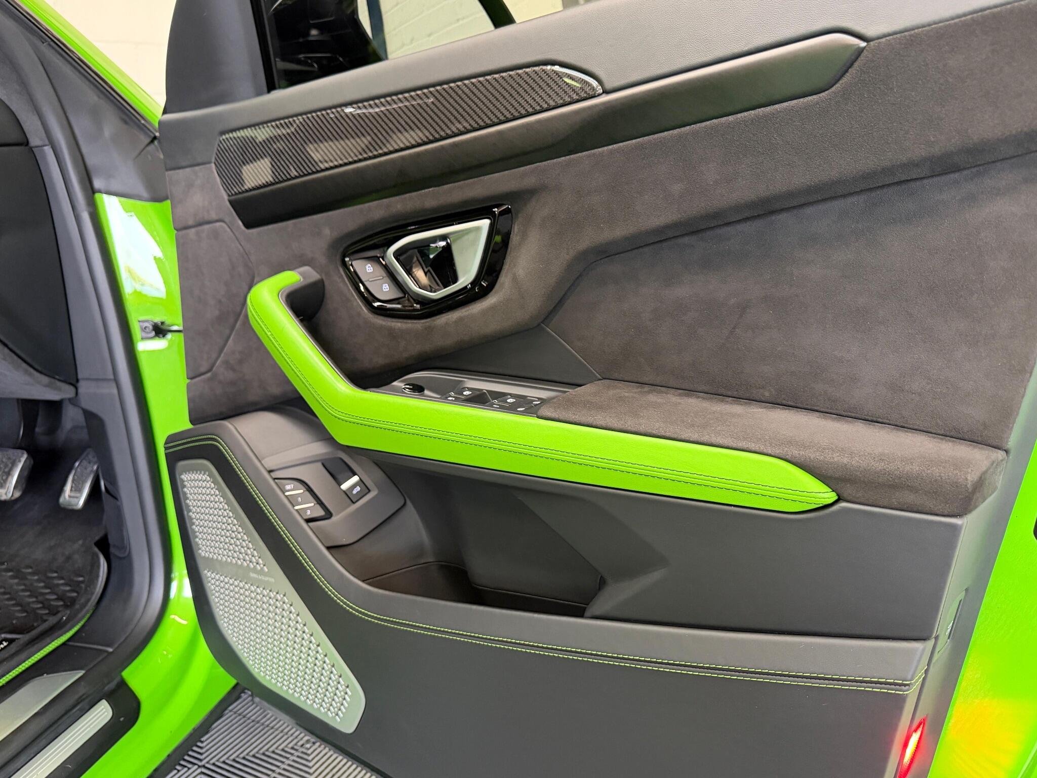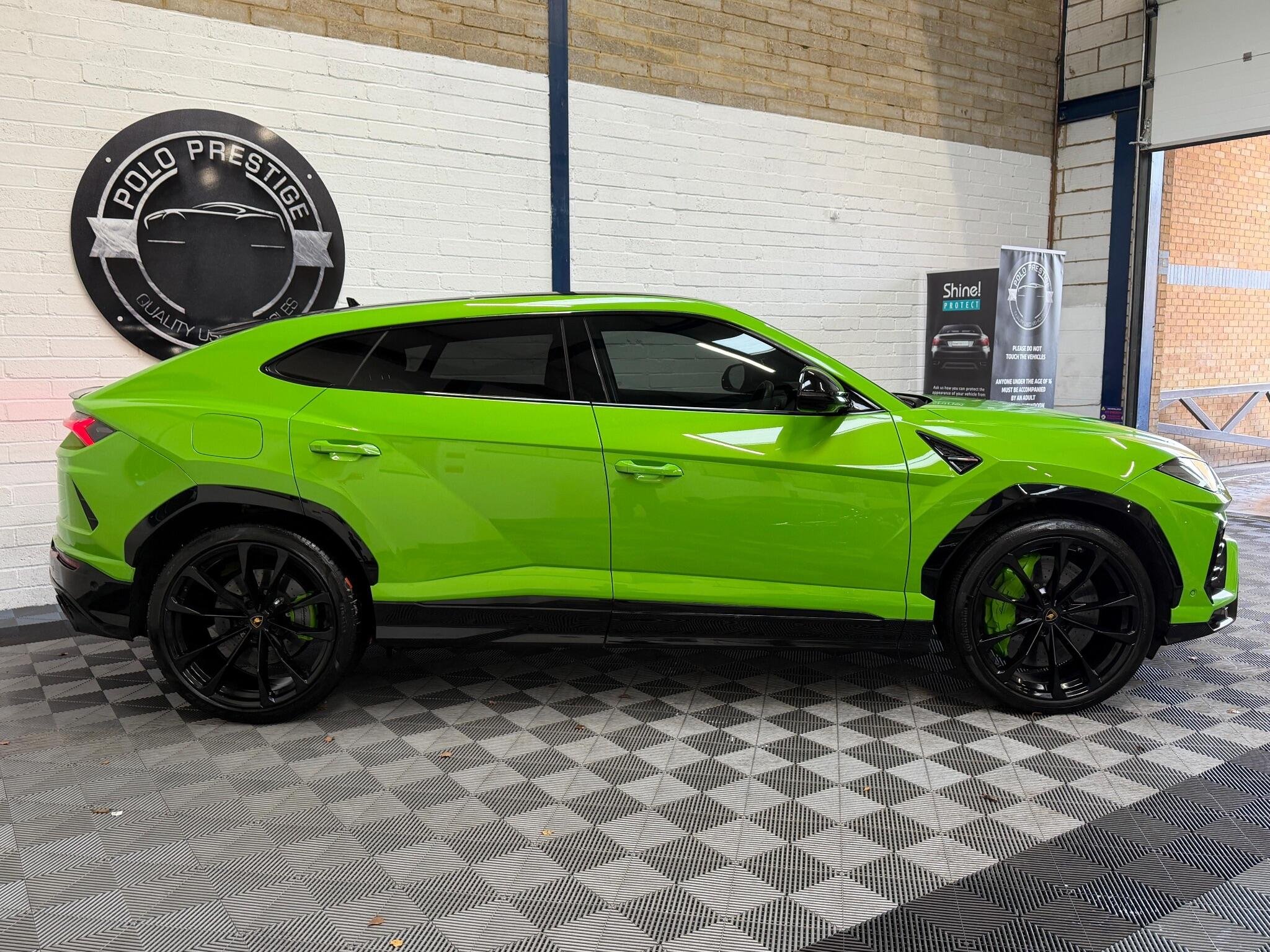 This 2022 Lamborghini Urus V8 BiTurbo Pearl Capsule is a remarkable example of Italian automotive engineering. Finished in the striking Pearl Capsule trim, this four wheel drive SUV boasts a powerful 4.0 litre petrol engine, meeting Euro 6 emission standards. Inside, you will find a luxurious Bang and Olufsen Advanced 3D Audio System, an electric panorama roof with an opening sunroof, and heated rear seats for enhanced comfort. The striking green painted brake calipers on the carbon ceramic brakes add a distinctive visual touch, complemented by an ambient light package that creates a sophisticated atmosphere.